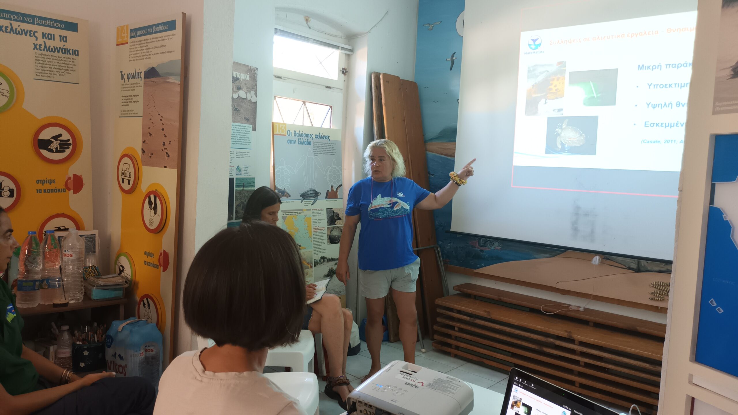 Ο καθηγητής Βιολογίας Α. Μάζαρης του Α.Π.Θ. μίλησε στους συμμετέχοντες για τον τρόπο που οι χελώνες επηρεάζονται από την κλιματική αλλαγή, ενώ ο Χ. Δημητριάδης του ΟΦΥΠΕΚΑ μίλησε για τις πιέσεις που δέχονται τα ζώα στον θαλάσσιο χώρο και ο L. Sourbes του ΟΦΥΠΕΚΑ έδωσε παραδείγματα καλών πρακτικών στην προσαρμοστική διαχείριση.